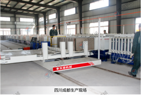 TYF-16B型復合墻板生產線,是我公司自主研發的固定式復合墻板生產線,該生產線投入小,生產產品品質量好,產品成型效率高,可生產多種類型的墻板,配有大型攪拌系統、移動注資系統、整體出板碼垛系統等自動化的配置,還配有骨料的輸送和計量系統。減少了勞動強度,工人操作更簡單方便,提高了生產效率。