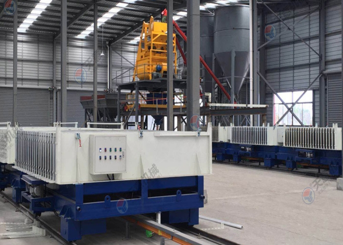 TY20型輕質(zhì)墻板生產(chǎn)線包括:墻板成型機(jī)、整體穿抽管系統(tǒng)、發(fā)泡系統(tǒng)、水箱、電子計量儲料倉、螺旋上料輸送機(jī)、儲料罐、螺旋輸送機(jī)、EPS熟化料倉、硫化干燥床、EPS預(yù)發(fā)機(jī)、數(shù)控配電室、發(fā)泡攪拌機(jī)、整體出板系統(tǒng)、叉車、成品堆放區(qū)、擺渡車。